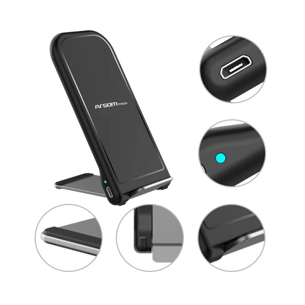 ARGOM KINETIC S2 – SOPORTE Y CARGADOR RÁPIDO INALÁMBRICO CON CERTIFICACIÓN QI DE 15W